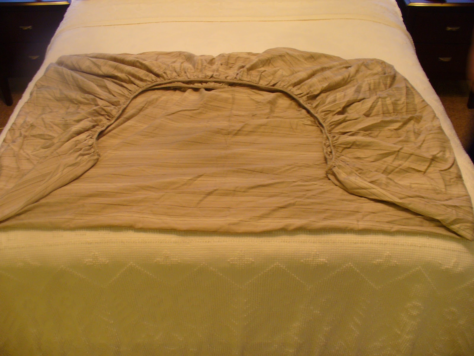 Isn't it nice when you open the package of new sheets and everything is so neatly folded?  Isn't it awful after you wash them that they never seem to be that way again?  Well here is my little tutorial on how to fold a fitted sheet.